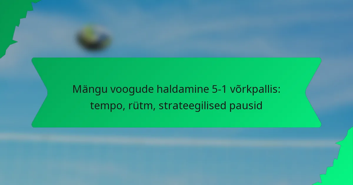 Mängu voogude juhtimine 5-1 võrkpallis viitab mängu temponi, rütmi ja ajastuse strateegilisele kontrollimisele, et optimeerida meeskonna sooritust. See on hädavajalik energiataseme säilitamiseks, suhtlemise parandamiseks ja mängu dünaamikaga kohandumiseks.
