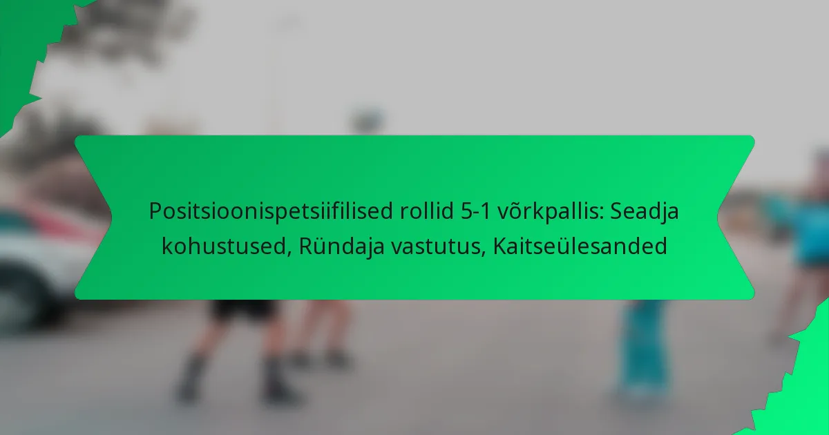 5-1 võrkpallisüsteemis on igal positsioonil spetsiifilised rollid, mis aitavad kaasa meeskonna üldisele sooritusele. Setter korraldab rünnakut, andes täpseid sööte, samas kui ründajad keskenduvad punktide saavutamisele ja strateegiate elluviimisele. Samal ajal töötavad kaitse mängijad usinalt, et takistada vastasmeeskonna punktide saamist, tagades sujuva ülemineku kaitsetööst rünnakule.