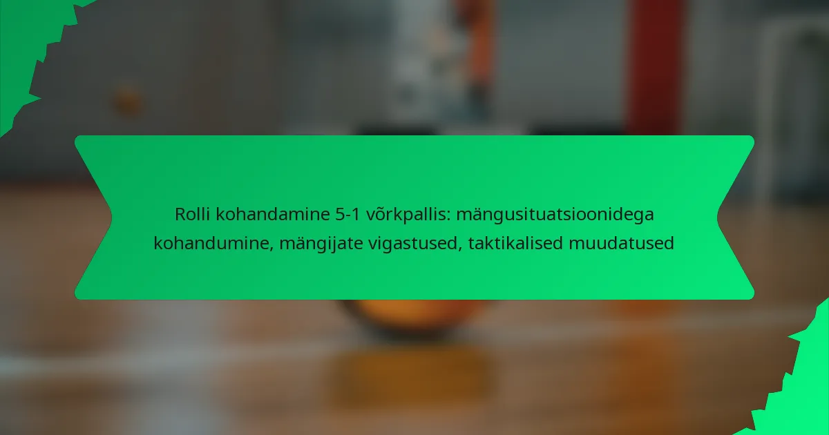 Tõhusad taktikalised muutused 5-1 võrkpallis hõlmavad mängijate rollide ja strateegiate kohandamist vastavalt mängusituatsioonidele, nagu mängijate vigastused või vastaste taktika muutused. Need muutused on hädavajalikud meeskonna soorituse säilitamiseks ja skoorimisvõimaluste maksimeerimiseks.