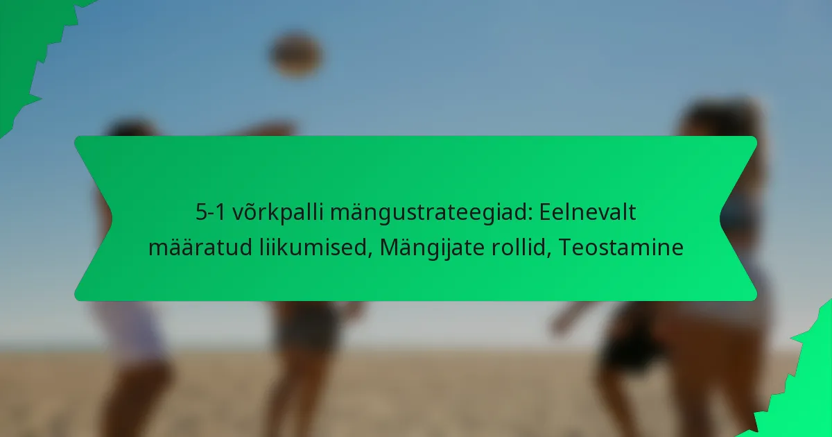 Tõhus mänguplaanide teostamine 5-1 võrkpallis sõltub ette määratud liikumistest, selgetest mängijate rollidest ja täpsest ajastusest. Keskendudes suhtlemisele ja meeskonnatööle, saavad mängijad parandada oma sooritust ja edukalt rakendada strateegiaid mängude ajal.